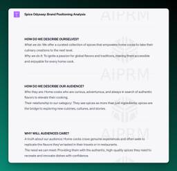 The AI could then give you insights like using images of colorful spices and maps of the world. For messaging, it might suggest emphasizing the freshness of your spices and the cultural experiences they can bring to the kitchen.