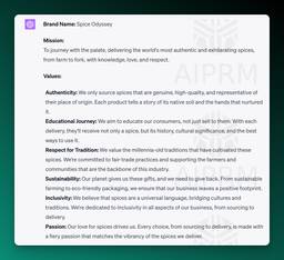 This advice from ChatGPT helps you create a brand that tells a story visually and verbally. It shows customers the global journey of your spices and the unique flavors they can add to their meals.