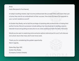 With the help of AIPRM, you can quickly draft personalized cold emails by simply adding in some details like the keyword or overall topic you want to cover. For example, if you are a real estate agent looking for more clients, you can use this prompt to whip up an email in seconds. For this prompt, we used the keyword real estate services.
